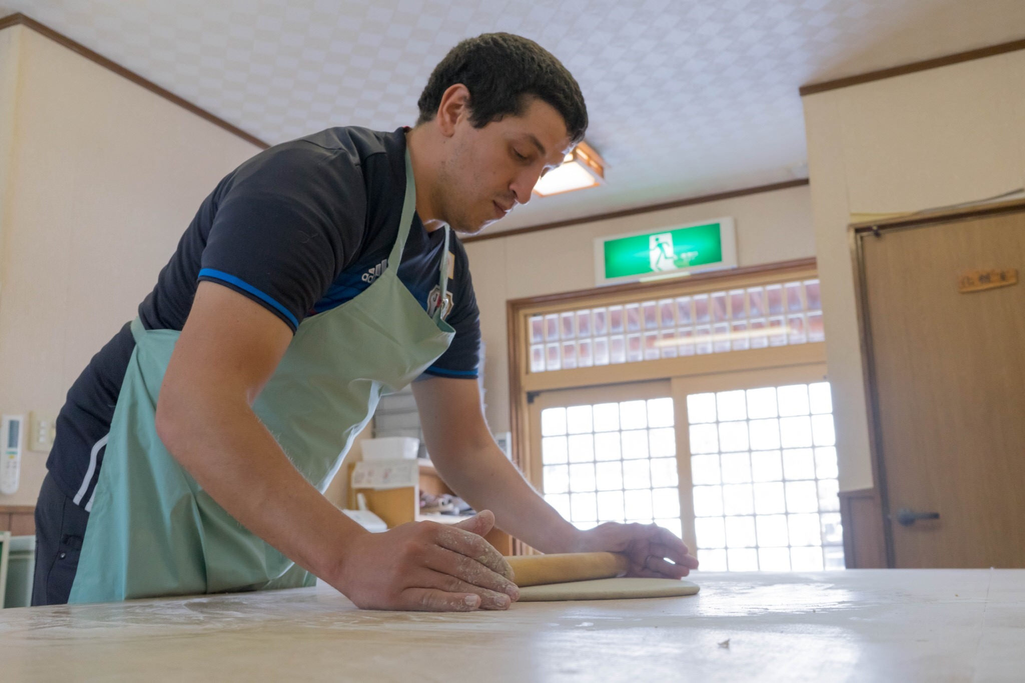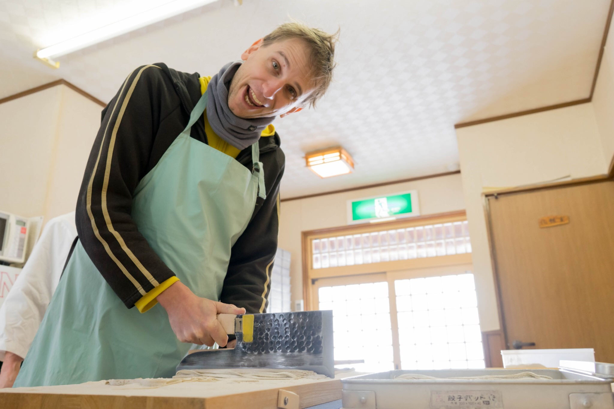 Ensuite, nous avons eu l’occasion d’apprendre à faire des Soba à partir de farine de sarasin, accompagné d’un maitre en la matière qui nous guidait à chaque étape. Enfin, pour terminer la journée nous avons appris à faire des Oyaki à la façon locale (fourrés à l’azuki – pâte de haricots rouges sucrée – et aux légumes).