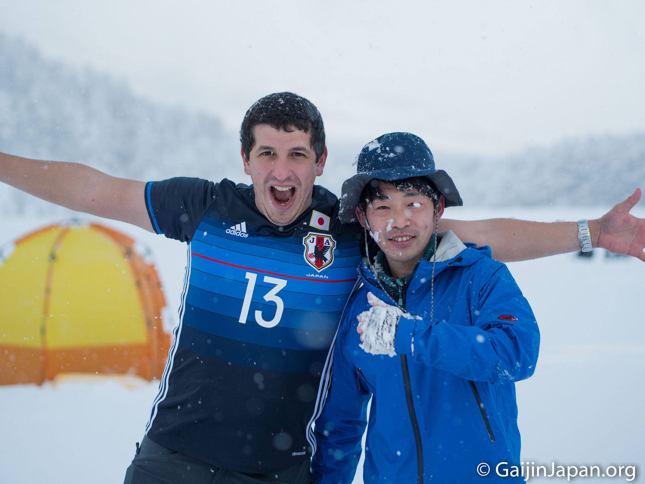 Entre deux sessions de glisse, il nous est aussi arrivé de manger et parfois même de mettre la main à la pâte pour préparer notre repas ! La meilleure journée pour illustrer ces propos reste celle du mardi où nous sommes tout d’abord allé pêcher des poissons « Wakasagi » dans un lac gelé (sacré expérience que de pêcher depuis un trou dans la glace) qui ont été frit par la suite. J’ai d’ailleurs pêché le plus grand nombre de poissons (12) de tout le groupe.