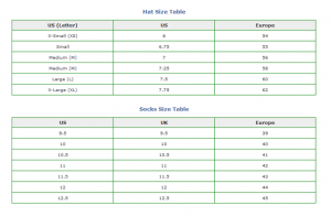 tailles des chapeaux et chaussettes dans le monde pour les hommes