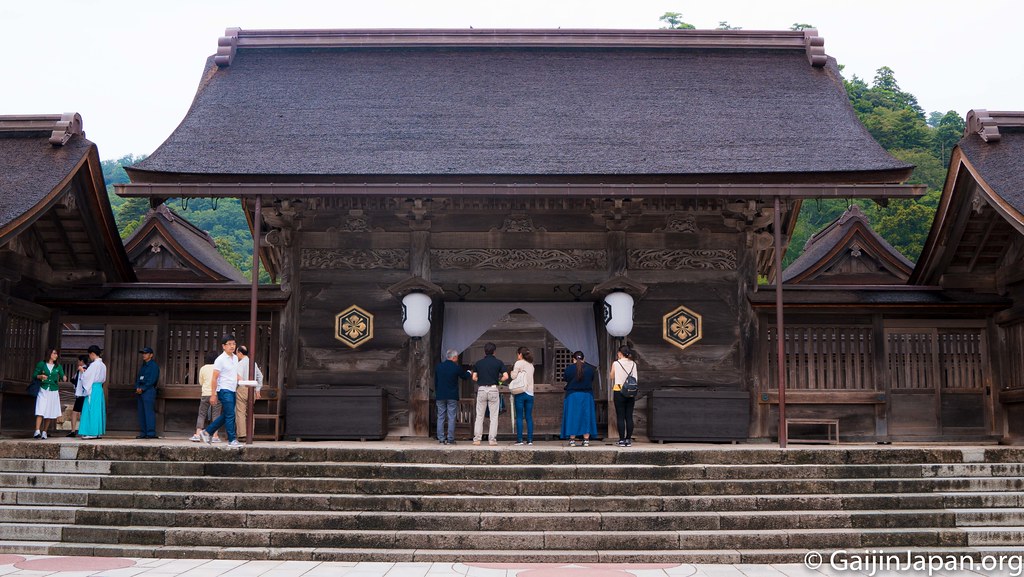Pour la première journée sur place, je ne pouvais pas ne pas repasser par le sanctuaire Izumo Taisha, l’un des plus importants de tout le Japon et qui est véritablement une belle pièce imposante à flanc de montagne. Malgré la foule présente sur place en ce samedi et la pluie fine, il se dégage une aura quelque peu particulière de ce lieu, comme une impression d’être pris dans la spiritualité japonaise, attrapé et emporté par cette dernière, pour la découvrir. C’est ma troisième visite sur place et pourtant je suis toujours envoûté par le lieu et ses charmes. Je me dis qu’un jour il faudra que j’y revienne lors de la saison des Sakura.