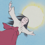 J’ai vraiment adoré ce film… Pour moi il est désormais dans mon panthéon « animation japonaise ». Je crois même que c’est devenu mon préféré en fait… C’est dingue, au début ça me disait rien à cause des dessins, je pensais à tort que c’était trop enfantin, et au final plus le film avançait et plus je trouvais ça beau, vivant, poétique, magnifique.. Ces estampes vivantes, avec en plus souvent beaucoup d’humour, (il y’a plus d’une scène ou j’ai souri^^) j’ai trouvé ça hyper vivant en fait! c’est plein de vie, ça bouge, ça respire! Ce film c’est un condensé de tout ce que j’aime dans le japon traditionnel; la poésie des petites choses du quotidien et de la nature, la simplicité, la subtilité… Une véritable ode à l’enfance, à la beauté de la vie… ça m’a vraiment émue. Et cette fin…!! j’ai été complètement transportée.. Je ne savais pas quoi penser.. tellement triste et en même temps il y’a une forme de gaieté avec cette musique (inoubliable ce moment, ça m’a rappelé un peu la parade dans Pompoko. (décidement j’adore le folklore japonais c’est génial, quelle imagination!!) Cette fin m’a bouleversée. elle a vraiment quelque chose de spécial. Et cette scène de la fuite, quand elle « pète les plombs », au banquet, c’est juste grandiose… ça représente tellement bien son état d’esprit.. et cette musique!! (les musiques sont magnifiques, et du coup je connais « warabe uta » par coeur à force de la chanter^^ j’adore cette jolie petite comptine, les japonais sont doués pour ça..^^) Enfin bref, moi aussi j’ai adoré ce film, et une chose est sûre, il fera partie des « obligatoires » que je montrerai à mes enfants (pas avant un certain âge quand même je pense qu’un enfant trop jeune ne saisira pas toute la subtilité de l’oeuvre..) en tout cas Je bassine déjà tous mes amis qui aiment bien les anime avec ^^