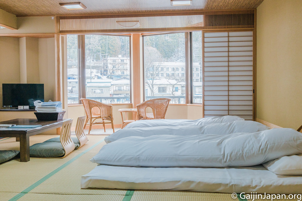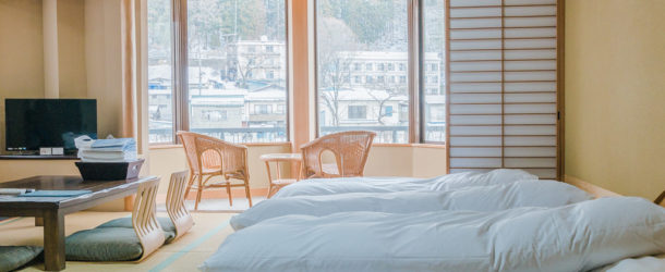 Je vous donne le contexte : je cherchais un logement pour 2 adultes (ma femme et moi) et un enfant (quelque part dans les 2 – 3 ans environ) pour un week-end en fin janvier, début février, à la neige, au Japon et je voulais un logement insolite ou un ryokan avec un certain standing. Je voulais emmener mon enfant découvrir la neige pour la première fois et aussi faire plaisir à ma femme pour son anniversaire.