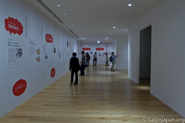 – 2ème étage: l’Histoire de Momofuku Ando ainsi que sa philosophie de création y sont exposées, accompagnées d’une réplique de son atelier de création où il inventa les Ramen instantanées. S’y trouve aussi un espace de présentation de toutes les gammes de Cup Noodles et autres nouilles instantanées, ainsi qu’une salle de projection pour y visionner un film sur l’histoire des Cup Noodles.