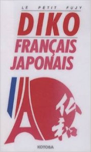 C’est dans la libraire Omeisha à Iidabashi – Tokyo que je suis tombé sur mon bonheur, par hasard, en feuilletant des bouquins. J’ai trouvé un dictionnaire tout petit, tout rikiki, mais surtout bien pratique.: Diko japonais – français, par « Le Petit Fujy ».
