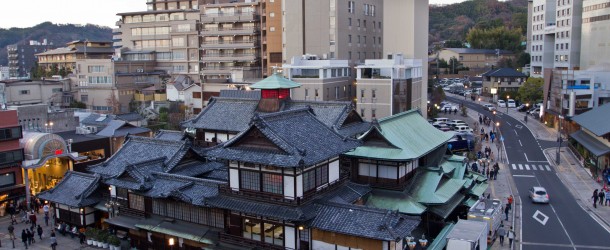 A Matsuyama bon nombre de touristes étrangers comme Japonais aiment à se promener, souvent en Yukata, dans le quartier de Dogo Onsen qui abrite la plus ancienne source d’eau thermale du pays, le plus ancien Onsen du Japon. Et c’est dans ce quartier que s’élève un bâtiment qui attire la foule, avec sa structure entièrement en bois et son ancienneté qui remonte à l’ère Meiji : Dogo Onsen Honkan.