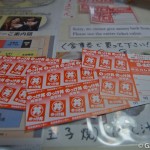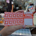 – A l’entrée du marché, vous rendre au point d’informations et acheter des tickets (5 tickets = 540 Yens / 10 tickets = 1080 Yens)