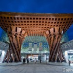 Vous avez certainement dû voir une, ou des, photo(s) de la gare de Kanazawa, ou plutôt d’un des éléments architecturaux qui est, en quelque sorte, devenu le symbole du lieu : ce grand arche en bois. Il est, avec un autre élément, l’un des piliers de cette station, situé à la sortie Est du bâtiment :