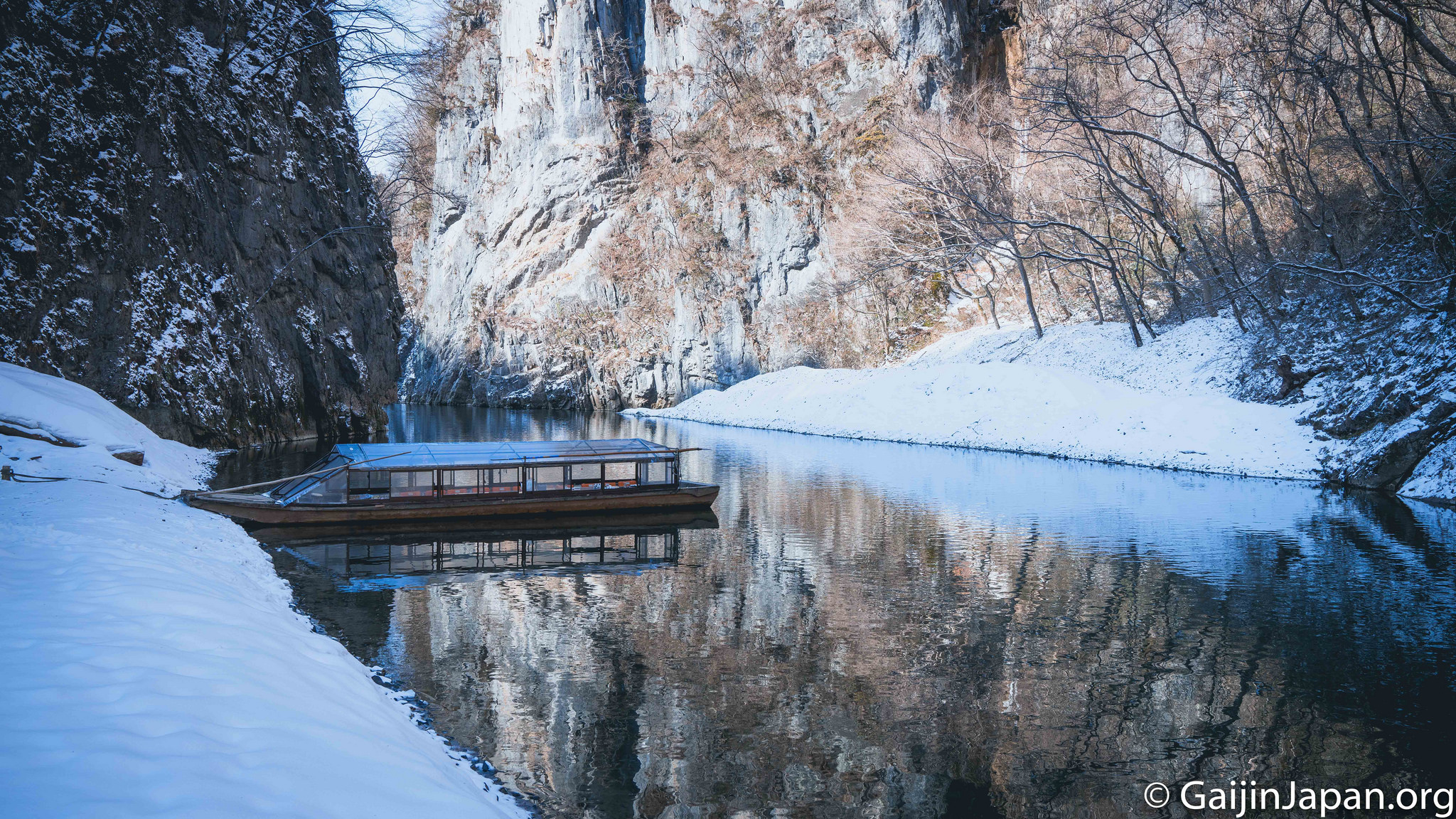 Situées à l’extérieur de Hiraizumi, ces gorges sont une excellente excuse à se laisser aller au fil de l’eau, dans un petit bateau à fond plat, ce genre de petit bateau en bois qu’une personne dirige avec un grand baton qui touche facilement le fond de la rivière, peu profonde. Se laisser aller, tel est le credo de cette balade de 90 minutes au cours de laquelle on peut nourrir les canards et carpes avec des aliments à acheter avant d’embarquer.