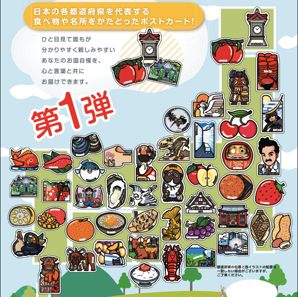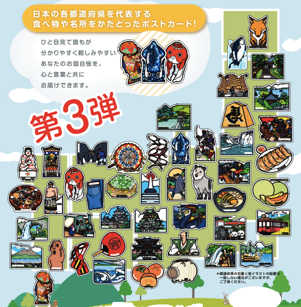 - elles représentent des symboles japonais de chacune des préfectures (plats, paysages, faune et flore, costumes, évènements, …)