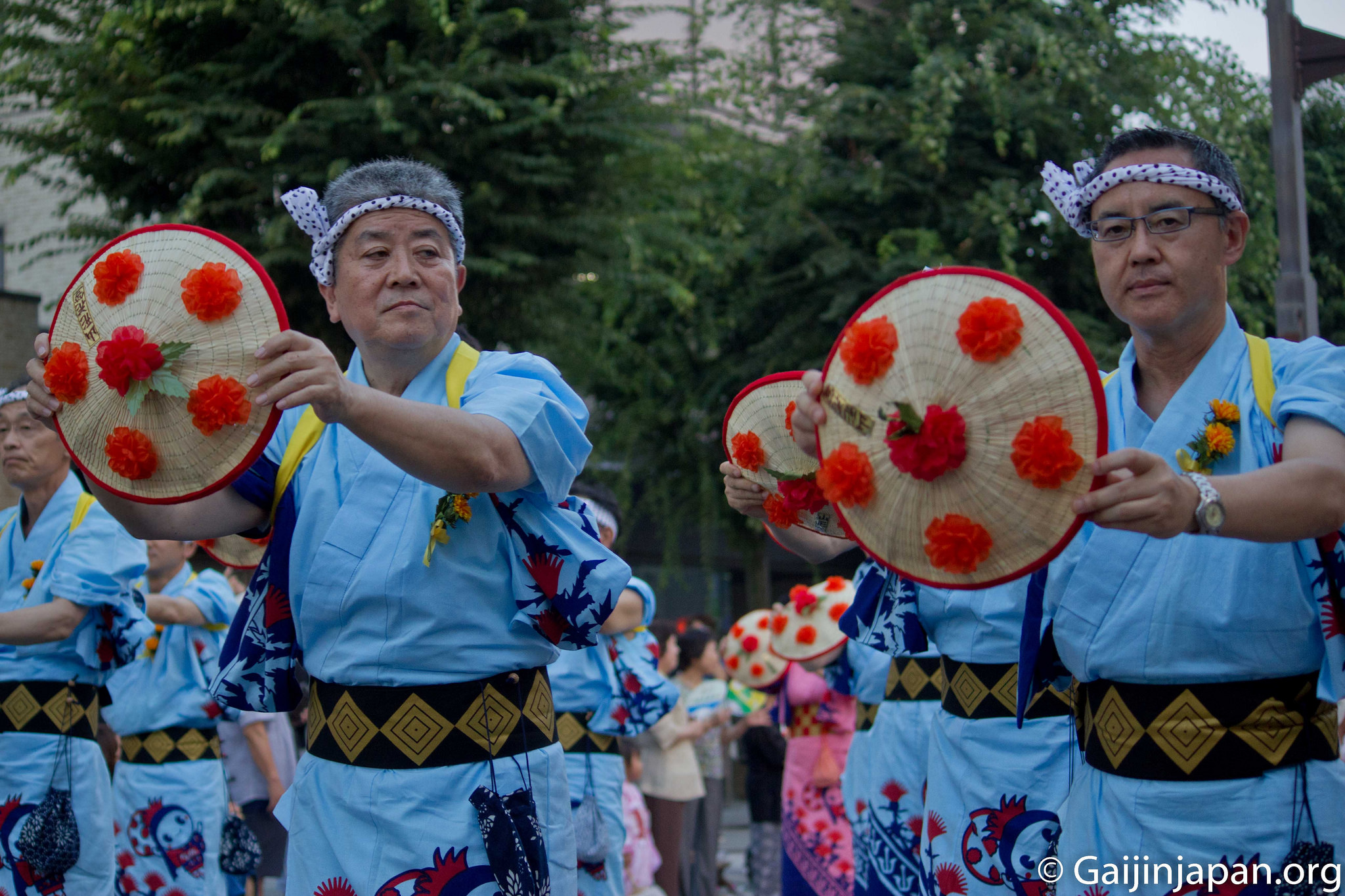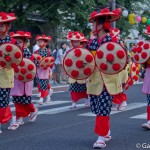 C’est plus de 10.000 danseurs qui vont exécuter la célèbre danse, répartis en une centaine de groupes environ, le tout sur une distance d’un kilomètre, face au bâtiment de l’ancienne préfecture de la ville de Yamagata. Les spectateurs assis en bord de route vont ainsi pouvoir profiter du spectacle qui s’offre à eux, entre danseurs, somptueux costumes traditionnels (ou non), chansons folkloriques, Taiko (tambours) qui résonnent ou encore le chapeau qui accompagne les danseurs.