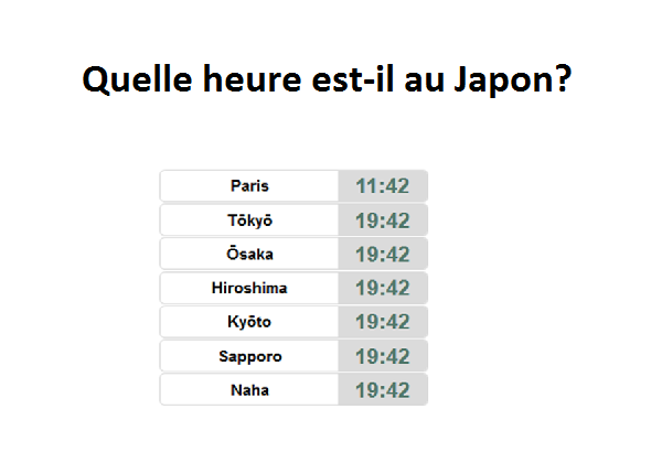 quelle heure est-il au Japon, décalage horaire france japon