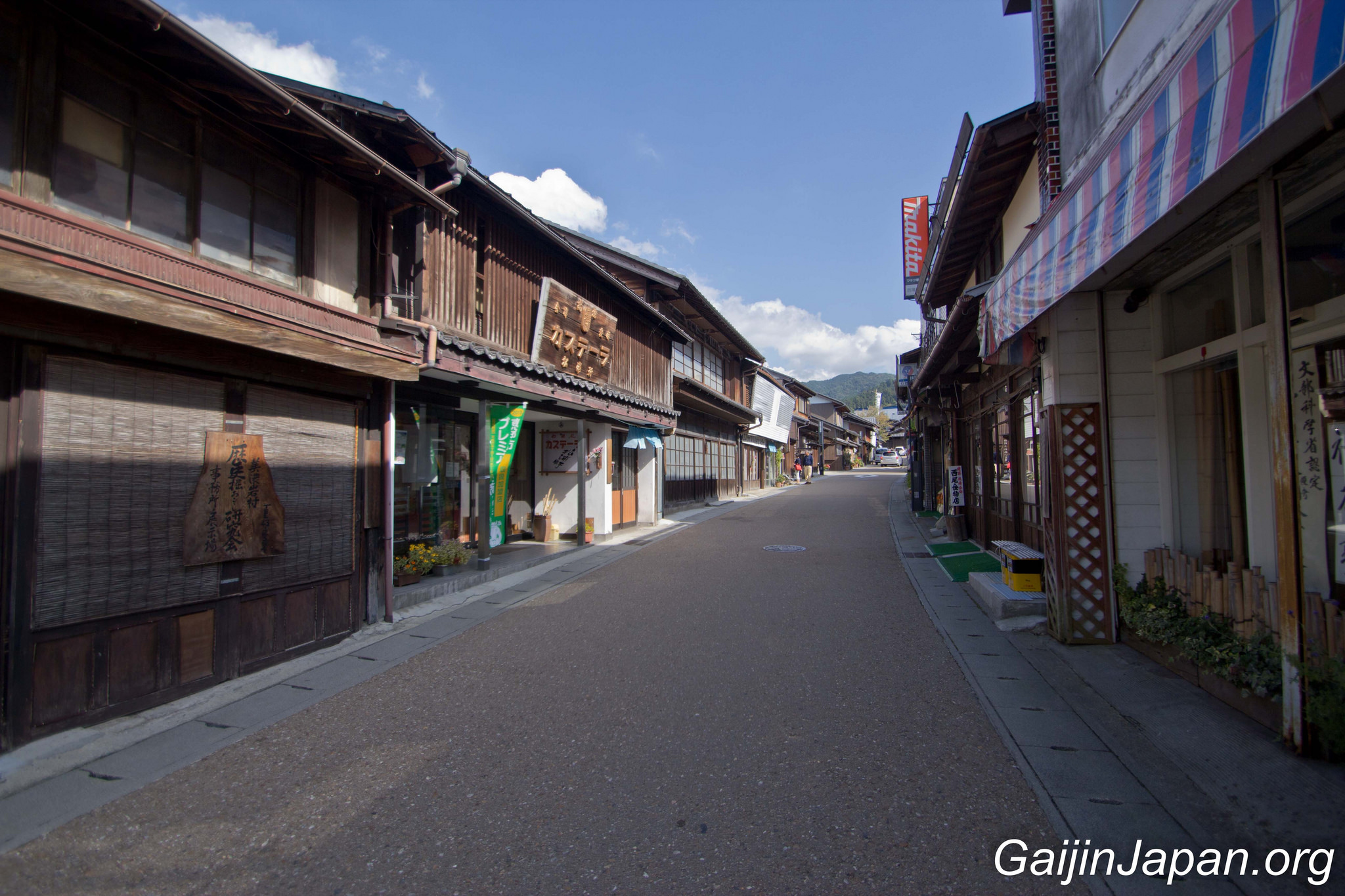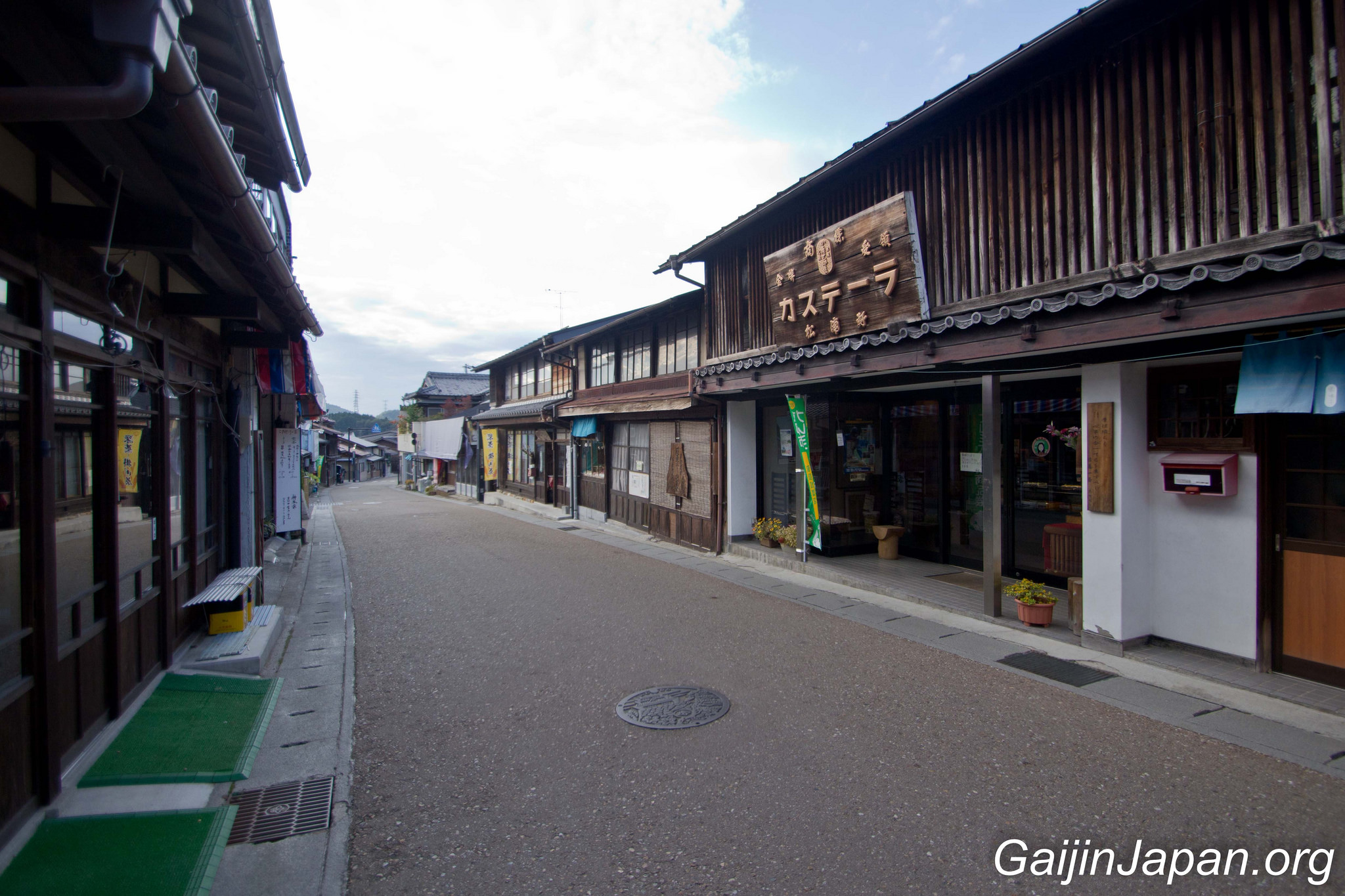 Dès lors que l’on arrive à la station d’Iwamura il nous suffit de tourner à droite et de marcher quelques dizaines de mètres pour avoir une rue hors du temps sur notre gauche. Là, Hon-dori s’offre à nous. Des maisons de bois, basses et aux formes droites des deux côtés cernent les passants et les envois quelques siècles en arrière, lorsque cette ville était une « ville château » et que les Tokugawa régnaient sur le Japon.