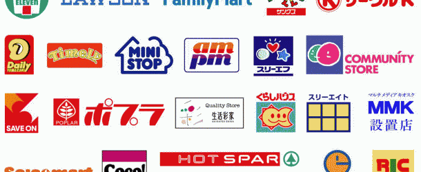 Les principales enseignes de Konbini au Japon sont : Seven / Eleven (7/11), Family Mart, Lawson 100 (100 Yen shop), Lawson, Sunkust, Mini Stop, Daily Yamazaki, Coco Store, Everyone, Lawson Natural, …