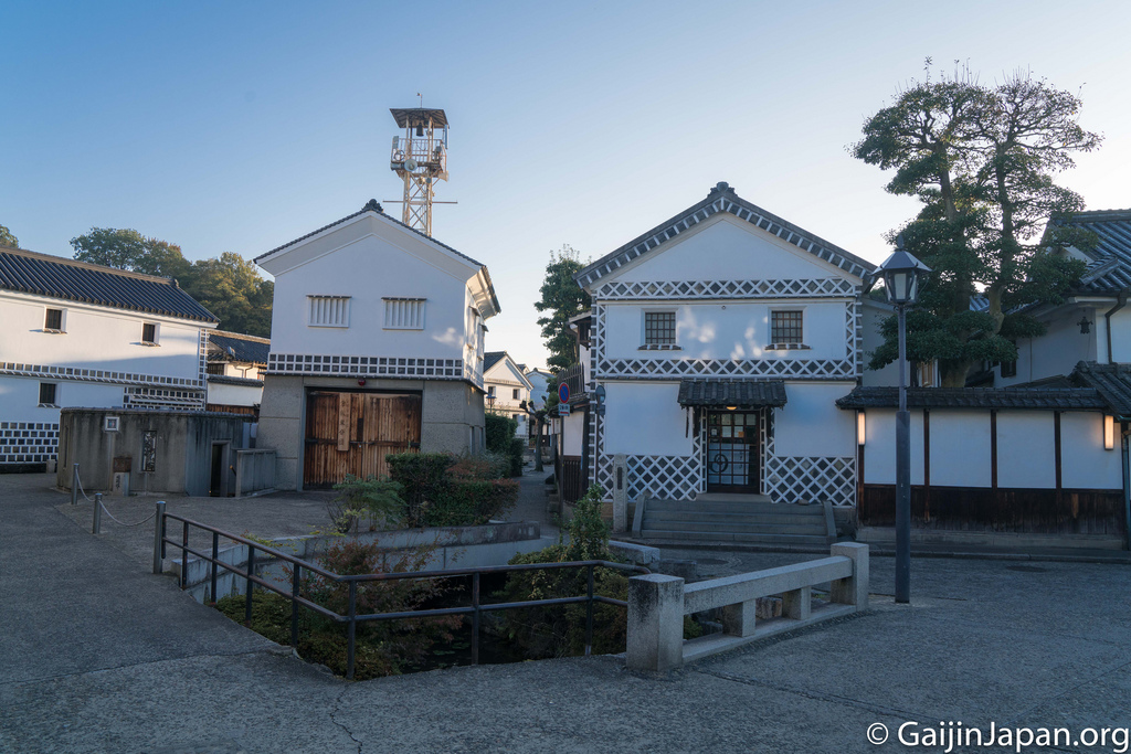 C’est ce rôle central de ville étape qui fait que l’on retrouve beaucoup d’entrepôts (ces bâtiments blancs avec des tuiles noires sur le bas) et qui a donné le nom de Kurashiki (倉敷) à la ville, « Kura » signifiant « entrepôt » en japonais.