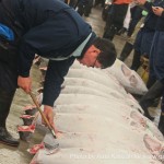 Les ventes aux enchères de thons rouges au marché de Tsukiji sont mondialement connues et réputées. Il faut dire que les quantités qui y sont vendues, tout comme les tarifs parfois mirobolants qui y sont atteints ne peuvent qu’attirer la lumière sur cette activité. Tous les ans, le 5 janvier a lieu la première enchère de l’année avec le premier thon rouge vendu qui atteint régulièrement de nouveaux records de prix (souvent détenus par la chaîne de restaurants Sushi Zanmai). Voici, à titre d’exemple les tarifs atteints au cours de ces dernières années: