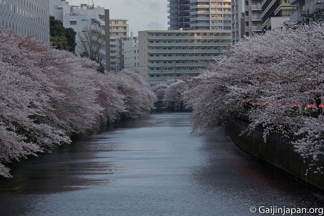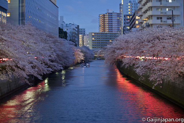 Lors de la période des Sakura, les quelques centaines de cerisiers (environ 800) offrent un paysage magnifique avec des branches qui basculent sur l’eau et forment une sorte de tunnel ou de tapis de fleurs de cerisiers, entre blanc et rose. C’est à cette période de l’année que se déroule le Sakura Matsuri de Megurogawa, durant lequel les rives de cette rivière seront prises d’assaut par les passants, les curieux, les couples et autres personnes venant admirer le spectacle, qui même de jour offre de belles vues entre eau, bâtiments et cerisiers. Mais le moment le plus prisé reste la nuit venue.
