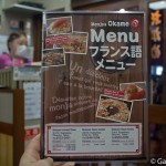 L’avantage incontestable de ce restaurant, outre sa liste, longue comme le bras, d’Okonomiyaki et Monjayaki, c’est la possibilité d’y avoir un menu en anglais, mais aussi et surtout en français, ce qui est une chose rare. Et lorsque l’on se lance dans une exploration culinaire, dans un pays étranger, sans savoir ce que l’on va avoir dans son assiette, il est parfois agréable de pouvoir lire au moins le nom des plats.