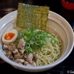 Une fois sur place, l’accueille fut chaleureux, par le jeune patron, propriétaire du lieu. J’ai fais ma sélection, accompagné de ma femme, sur le distributeur automatique situé à l’extérieur du restaurant (et où le menu est affiché en japonais et en anglais). Ma femme a opté pour un « Aburi Tori Maze Soba » (sans soupe) tandis que moi je me suis tourné vers un « Asakusa Ramen » (avec soupe).
