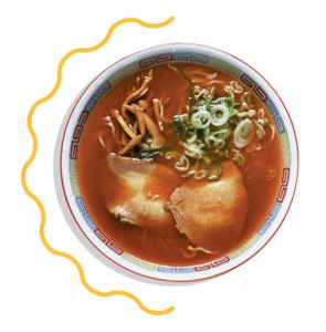 – Asahikawa Ramen (旭川ラーメン): mélange de viande de porc et des restes de poulet dans un bouillon de fruits de mer, le tout avec un Tare au Shoyu. Tout ceci est couvert d’une couche de lard fondue, qui permet de faire face au froid de l’hiver.