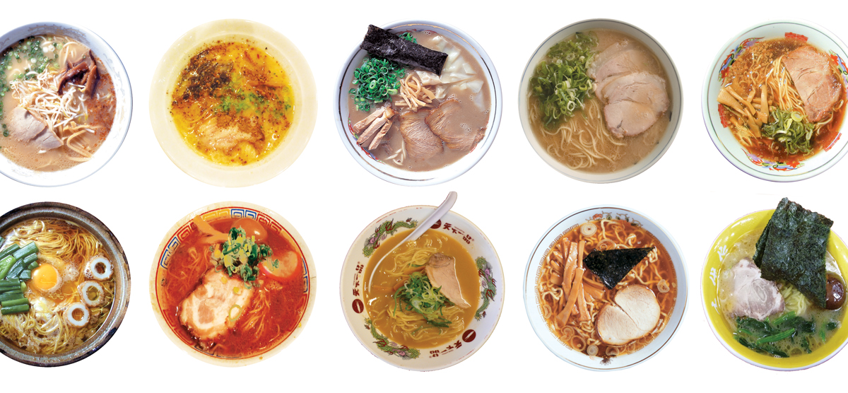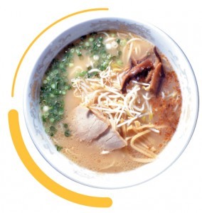 – Hakata Ramen (博多ラーメン): des os de porc cuit des jours durant à feu vif, jusqu’à ce que la moelle en suinte. Ce ramen est servit avec des nouilles fines que l’on plonge dans l’eau bouillante une seconde à peine, le tout avant de les servir. Ensuite, il faut les tremper dans la soupe et les manger. Il est accompagné de graines de sésame, ail, gingembre mariné, feuilles de moutarde et de soja.