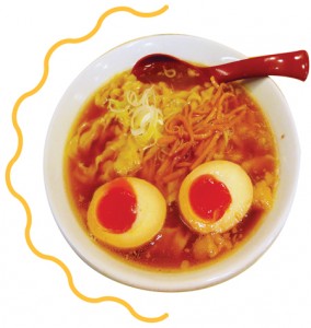– Tokushima Ramen (徳島ラーメン): le bouillon est réalisé à base d’os de porc mélangé avec de la sauce soja « âgée et forte », auxquels sont ajoutés quelques fines tranches de poitrine de porc et un œuf cru sur le dessus.