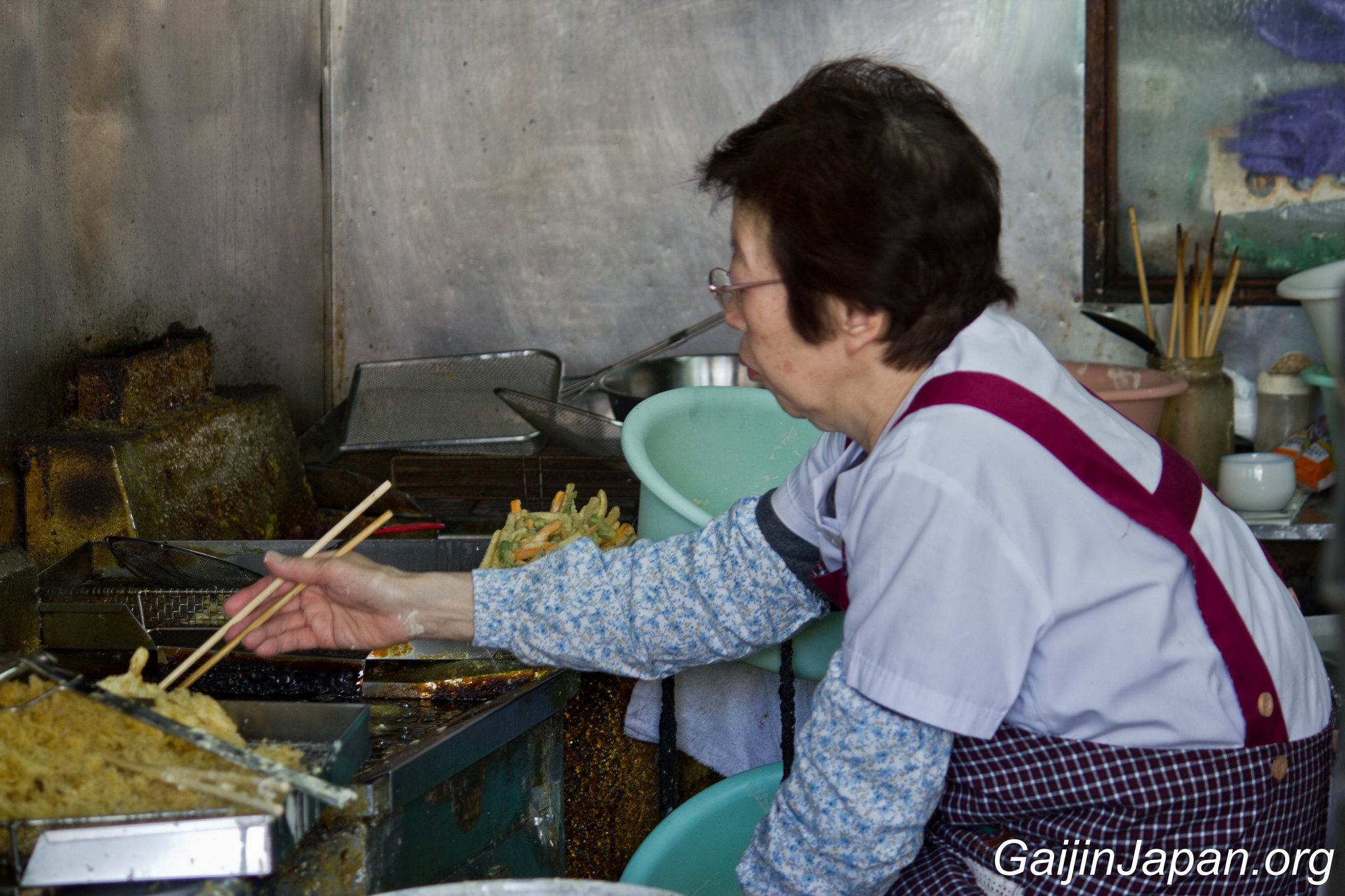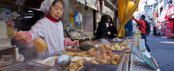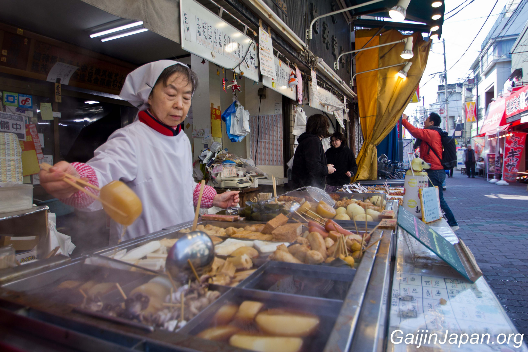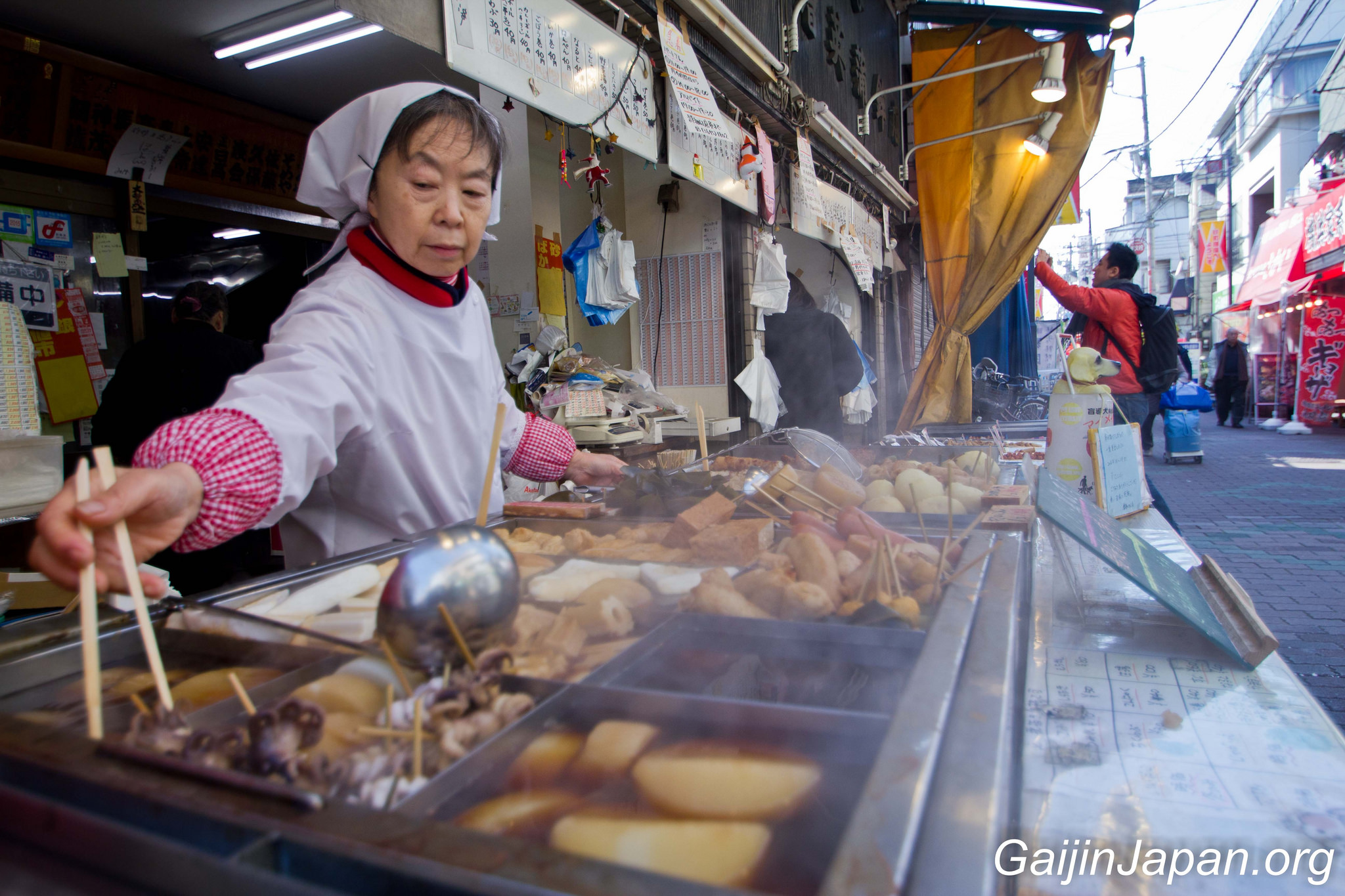 Dès l’entrée de cette rue de trois mètres de large, pour 670 mètres de long entre Meiji –dori et Maruhachi-dori, on se sent emporté dans le temps. On ne voit plus le Tokyo que l’on croise à Shinjuku, Shibuya, Shinagawa et autres places ayant laissé place à la modernité. On est là dans ce que l’on appelle la Shitamachi (ville populaire) de la capitale nippone et on le sent bien, au travers des bâtiments de petites tailles et défraichis et aux vendeurs qui semblent être là depuis bien longtemps.