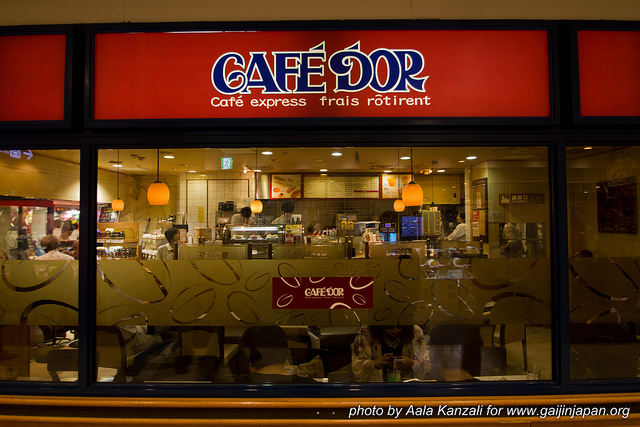 Nous rentrons donc dans la station de Yokohama et son centre commercial attenant. Nous trouvons un café au nom bizarre (merci le bon vieux franponais) et nous allons nous y relaxer. Le problème, c’est qu’une fois assis, après un tel effort, le corps encaisse tout d’un seul coup. Se relever devient un véritable challenge et relancer la machine aussi.