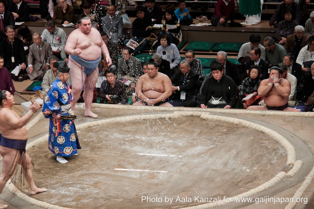 Les préparations des combats de Sumo étaient beaucoup plus longues. Les Sumo avaient le droit de jeter du sel pour purifier le terrain et se laver la bouche avec de l’eau avant de commencer le combat, entre autres.
