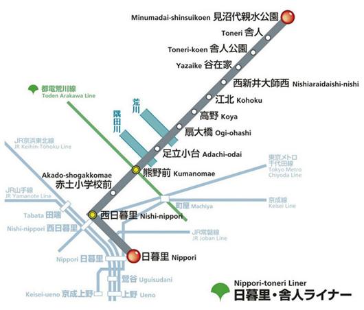 Téléchargez le plan de la Yurikamome, et Tokyo les transports en commun – Disney Resort Line. Retrouvez le plan de la Nippori Toneri Liner sur cette image :