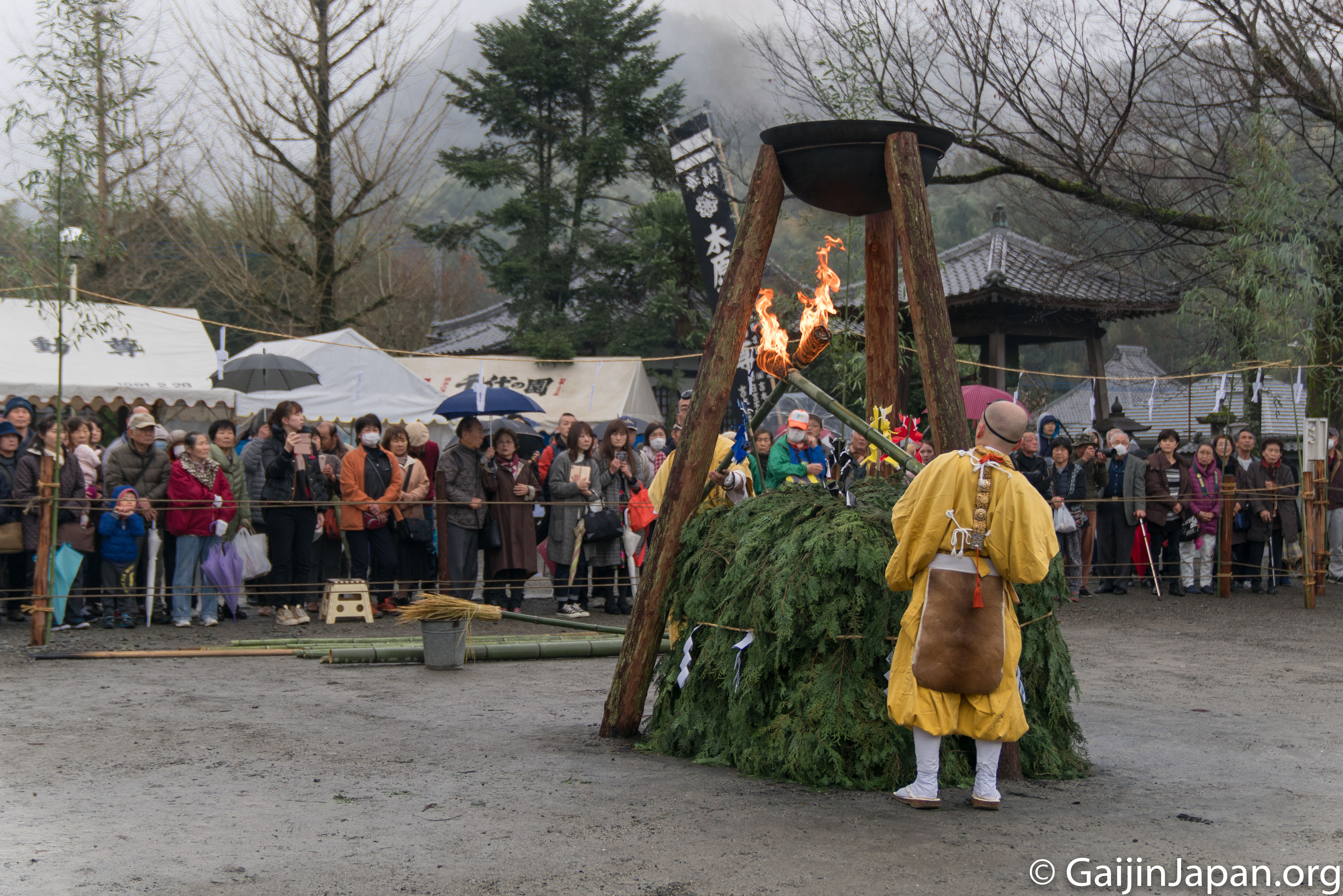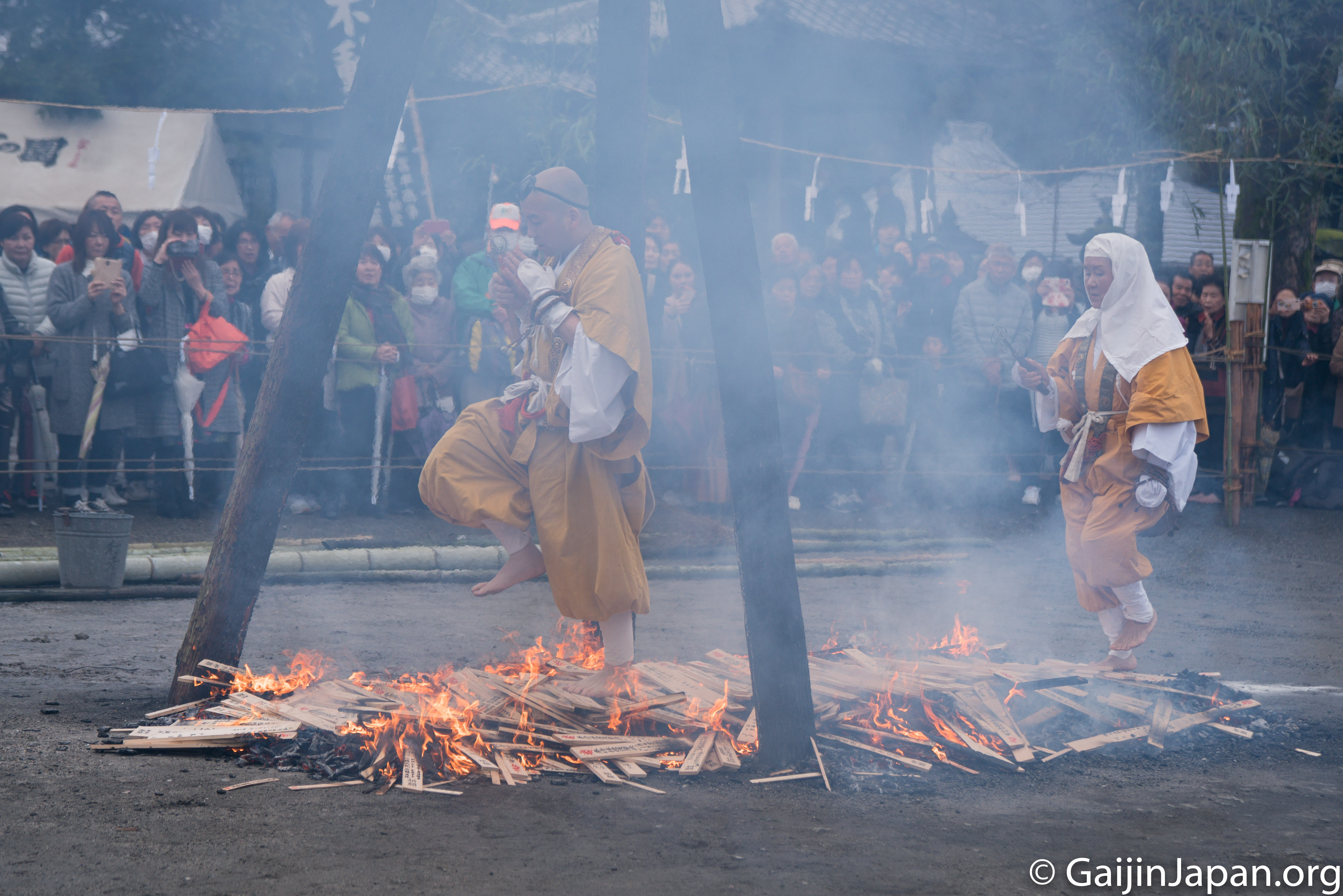 Tôt le matin, direction le temple de Kiharafudoson, méconnu, pour assister au « fire festival » local où les moines vont marcher sur des charbons ardents avant de laisser place au public et ceux qui veulent s’y essayer. Ce fut impressionnant de les voir marcher au travers des flammes et je m’y suis essayé aussi. Bon, il faut reconnaître qu’on n’avait pas à marcher au travers des flammes mais seulement sur les charbons restant et que la température était chaude mais supportable.
