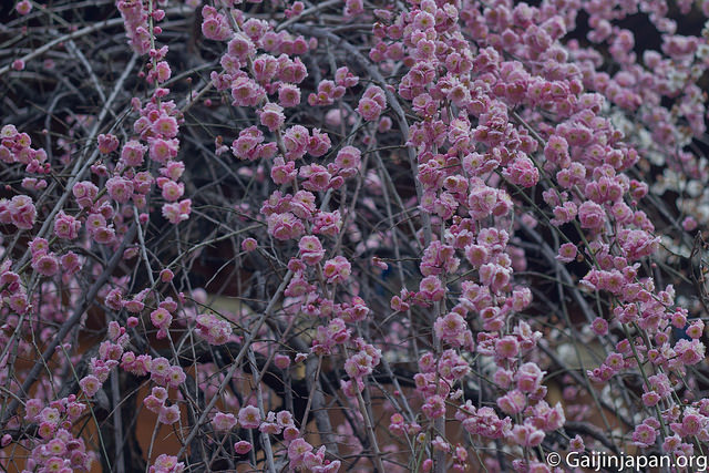 Ume (梅), le nom japonais des pruniers (Prunus Mume), aussi appelés « abricotier du Japon », de leurs fruits mais aussi de leurs fleurs, donne une superbe floraison qui à lieu à la toute fin de l’hiver japonais, alors que le printemps n’a pas encore commencé. C’est au mois de février qu’ils vont commencer à montrer le bout de leur nez à tous les curieux et amoureux des floraisons au Japon, et ce jusqu’à la mi-mars / fin mars, selon les endroits et les années.