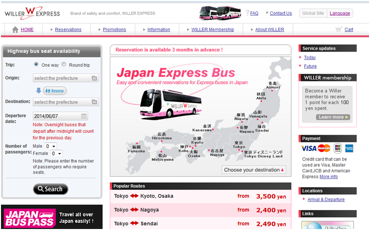 Prendre le bus de nuit au Japon avec Willer Express page d'accueil