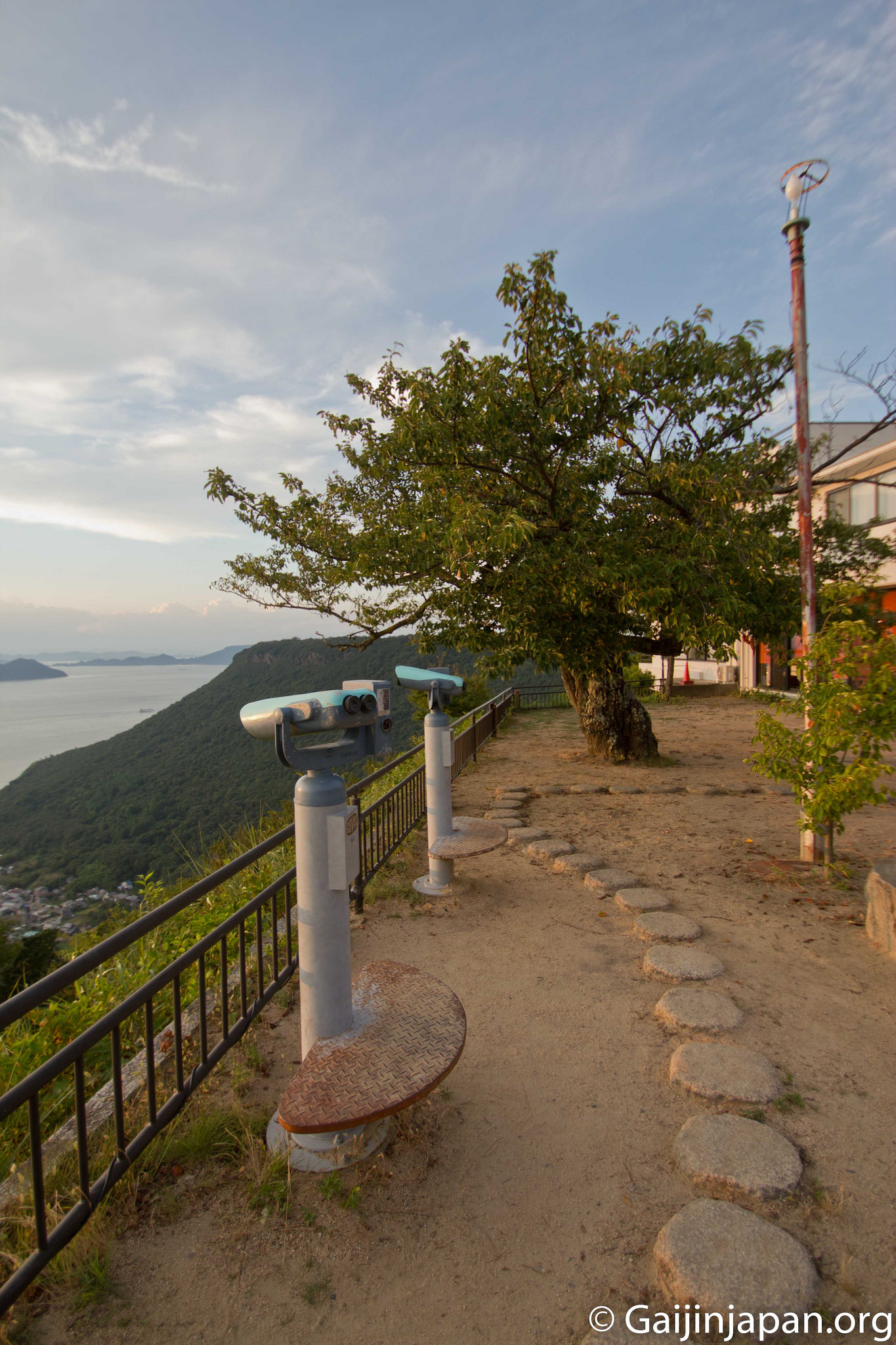 Il y avait bien un funiculaire qui menait au sommet mais il est hors de service depuis l’année 2004. L’idéal, notamment si vous voulez observer le coucher du soleil sur place, serait de s’y rendre en taxi ou en voiture. Enfin, pour les marcheurs, vous pouvez tout simplement suivre le chemin de randonnée du pèlerinage de Shikoku qui vous mènera au Temple Yashima et donc au sommet.